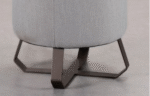 Puff McRae redondo estofado com estrutura em aço carbono cortado a laser e pintura de acabamento, espuma D26.