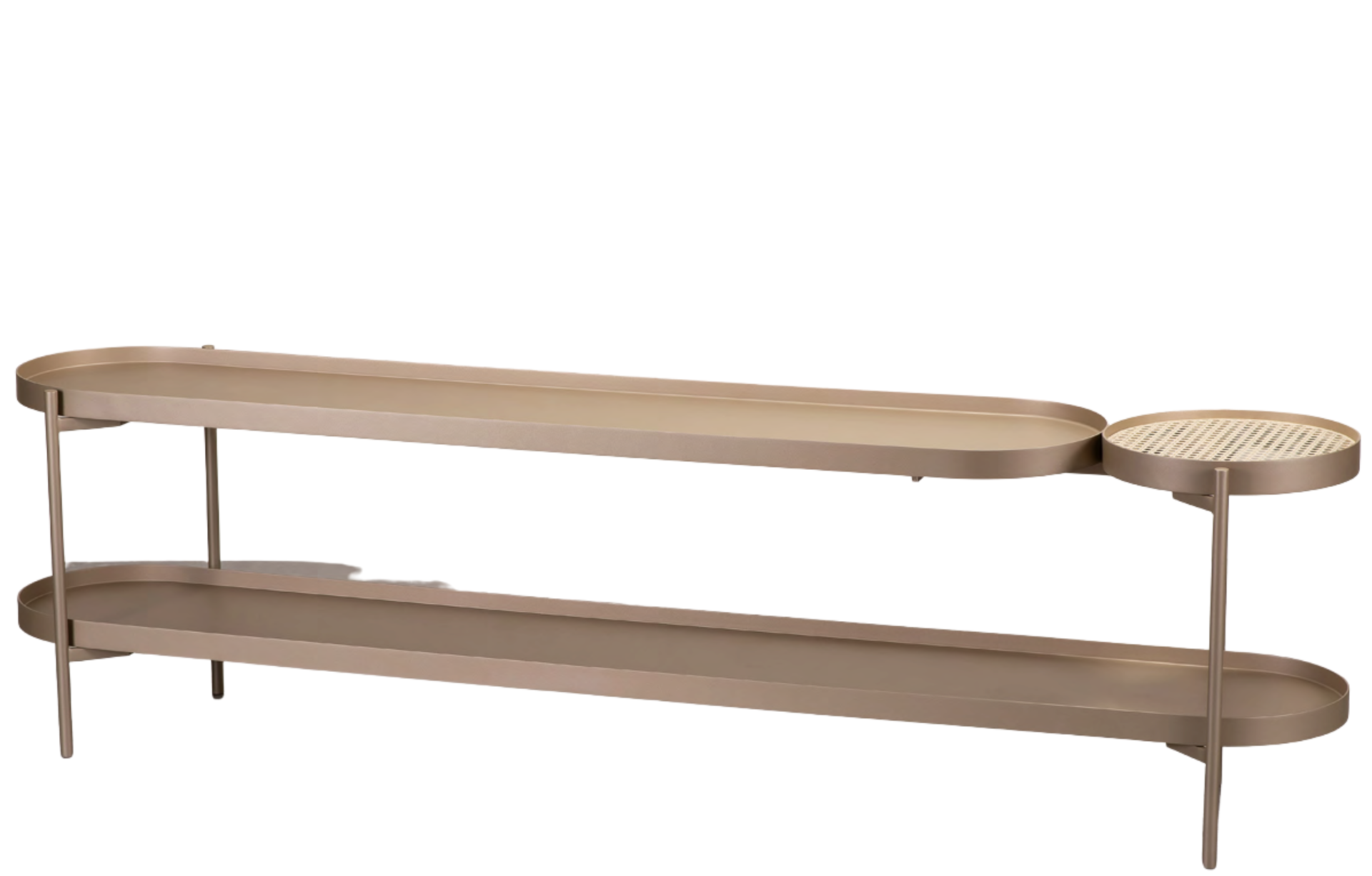 Sofa Table Carpre com opções de acabamentos em lâmina natural ou pintura laca. Estrutura em aço carbono pintado.