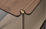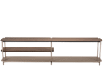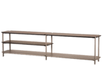 Sofa Table Shaley com opções de acabamentos em lâmina natural ou pintura laca. Estrutura em aço carbono pintado.
